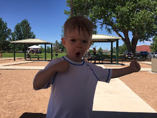 We signed EZ up for soccer! He lost interest the longer it went on. He's not an aggressive kid and doesn't do super great in large groups. He's the kid that will get out of the way or stand back and let the others take action. It was a good learning experience for him though. He had fun and learned some team building skills. Not sure we'll do it next year... but probably. There isn't much to do so we gotta take opportunities when they come. We did run into some old friends and made new ones at the games so it was well worth it! Don't you love the thumbs down picture?